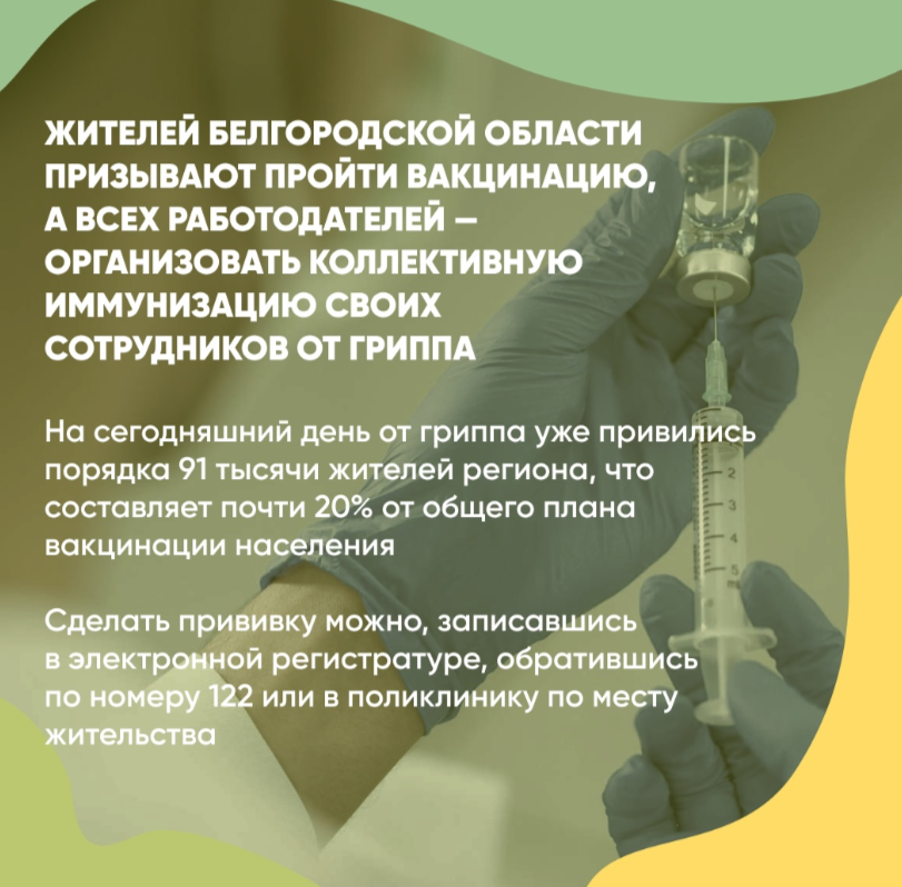 В этом году планируется привить свыше 807 тысяч человек: свыше 625 тысяч взрослых и более 181 тысячи детей. В первую очередь, вакцинация от гриппа ориентирована на юных и пожилых жителей Белгородской области, входящих в группу повышенного риска.
