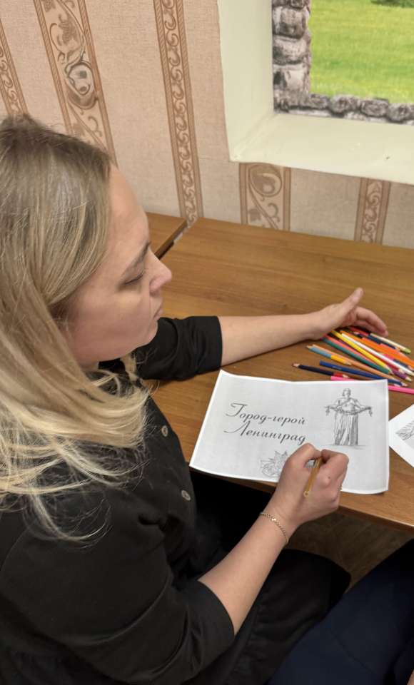 В атмосфере тишины и сосредоточенности, участники арт-терапии взяли в руки карандаши. На бумаге оживали образы, навеянные рассказами о мужестве и стойкости ленинградцев. Получатели социальных услуг с усердием раскрашивали свои рисунки, вкладывая в них частичку своей души и уважения к подвигу предков.